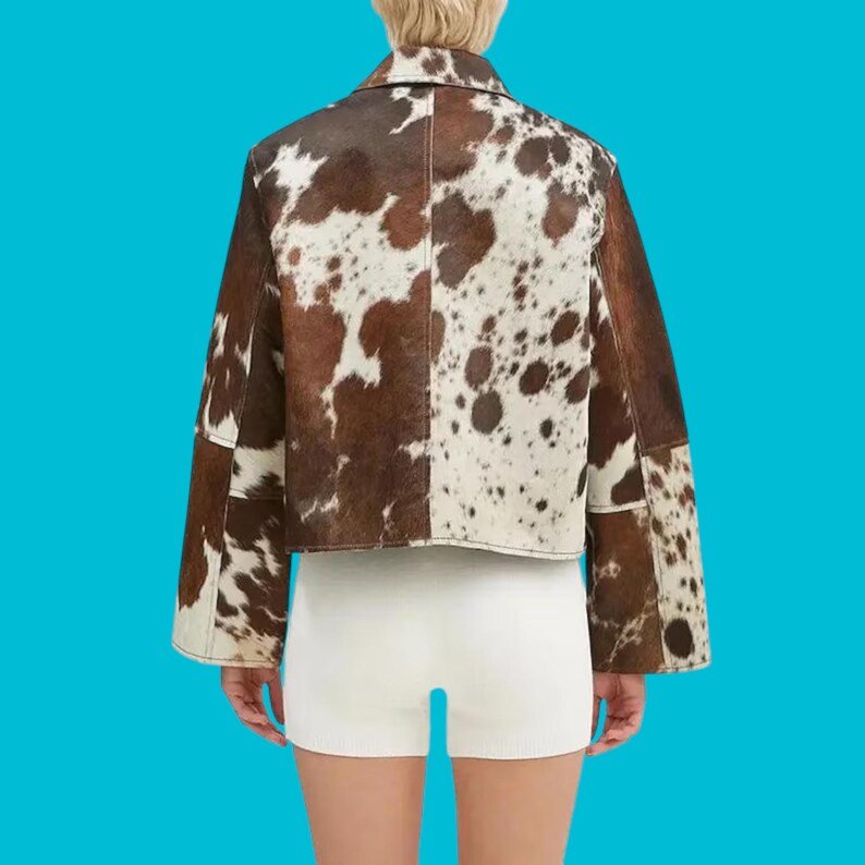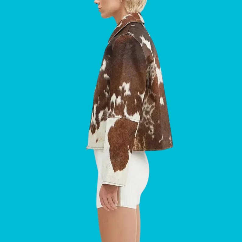 Women’s Brown White Cowhide Leather Jacket Western Style Casual Festival Wear